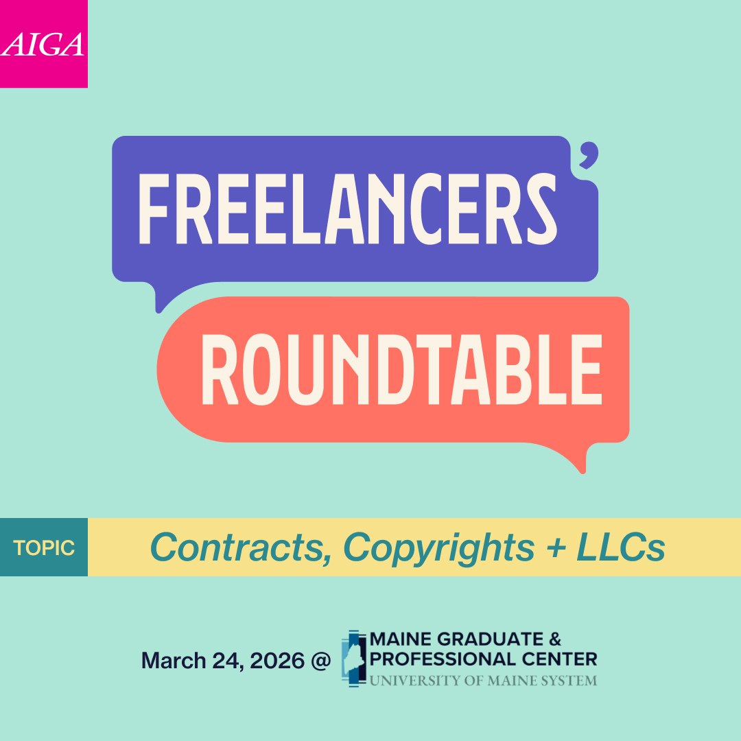The Maine Center (Fore Street Entrance) 300 Fore Street, Portland, MEAIGA Maine is a volunteer-run nonprofit serving designers and creative professionals across the state. The Freelancers’ Roundtable series brings together freelancers and small business owners, from students to long-established practitioners, for learning, conversation, and community. The March 2026 Freelancers Roundtable … Read More